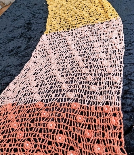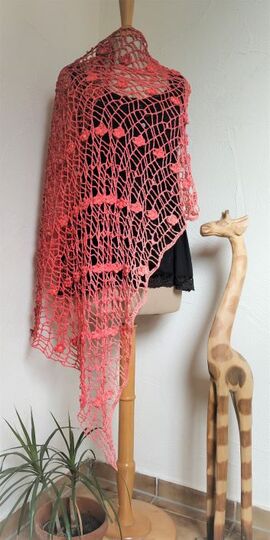 Die Anleitung für diesen wunderschönen Schal enthält eine Häkelschrift und die Anleitung in Worten sowie einige Detailfotos.