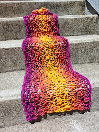 Häkelanleitung "Namaqua" für einen romantischen Sommerschal oder Stola mit Blümchen.