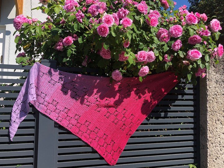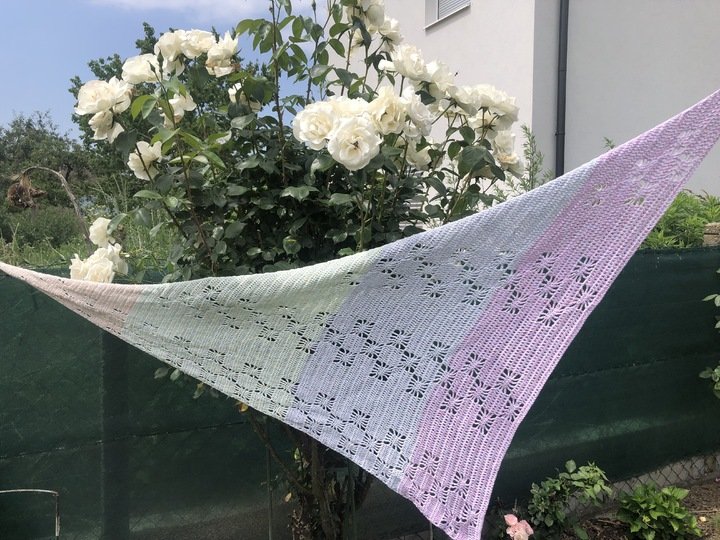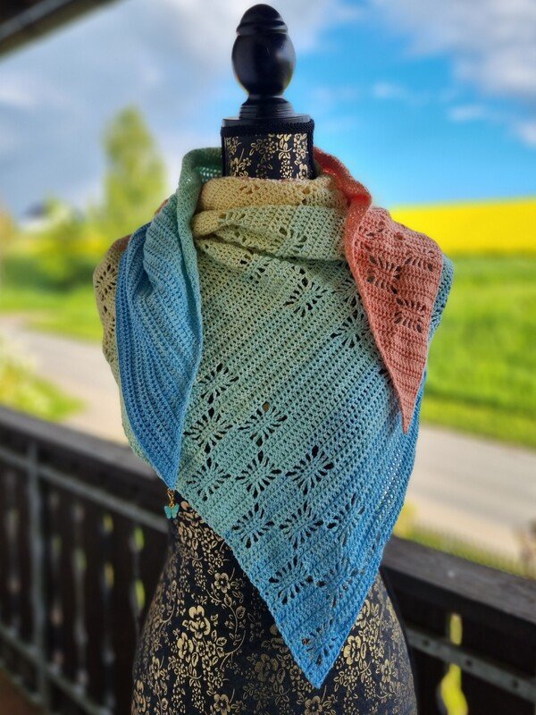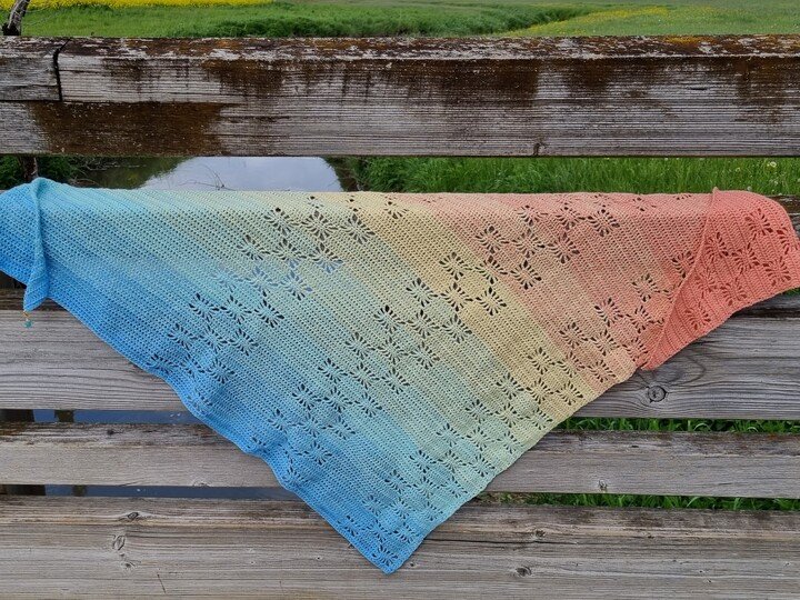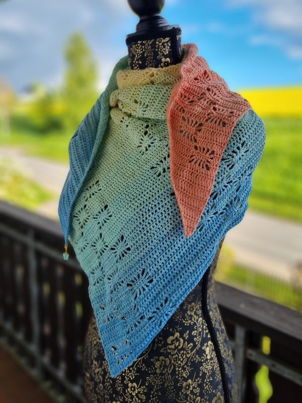 Simply Stars ist ein flott gehäkeltes Dreieckstuch mit effektvollem Muster, passend für jede Jahreszeit:-)