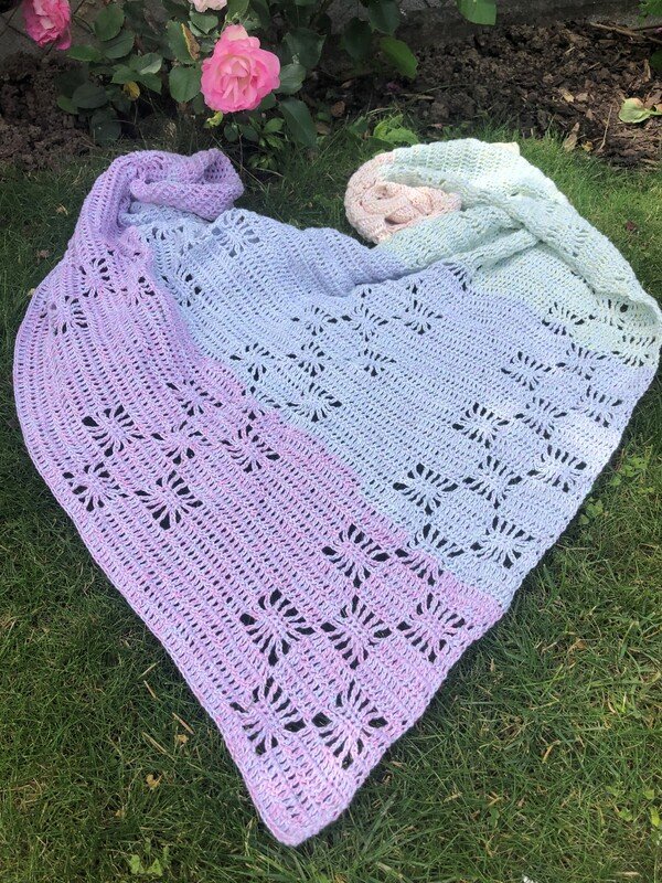 Das Tuch kann in beliebiger Größe gearbeitet werden.