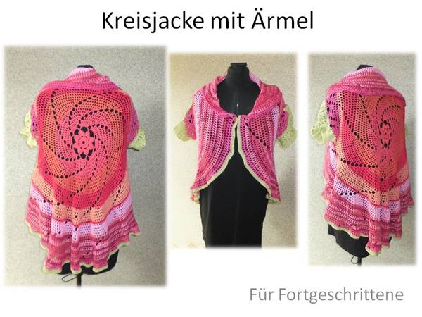 Eine Kreisjacke - einfach zu häkeln mit wunderschönem Muster - eine weitere Häkelanleitung aus meiner Spiralen-Welt-Serie - NICHTS FÜR ANFÄNGER - Für Kindergröße 74 bis Erwachsenengröße 3XL.