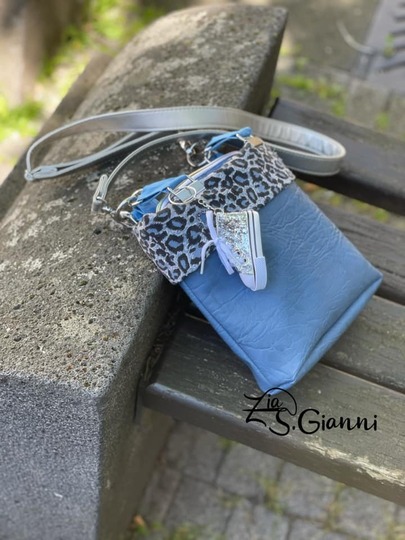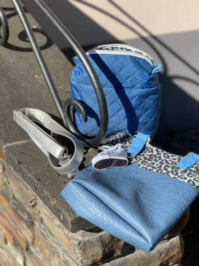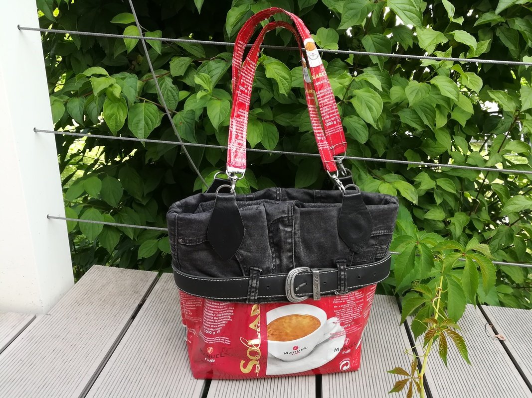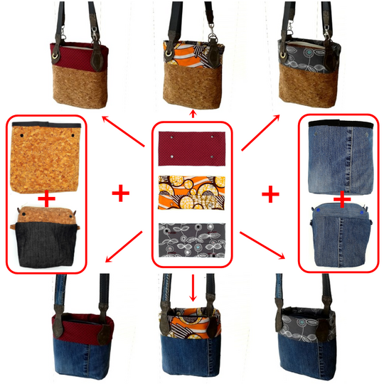 Oder lege den Dekokragen um eine andere Außentasche – so wird aus einer legeren Jeanstasche z.B. eine elegante Kunstledertasche, immer noch farblich abgestimmt auf dein Outfit.