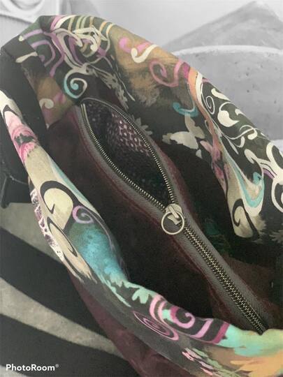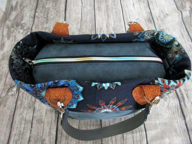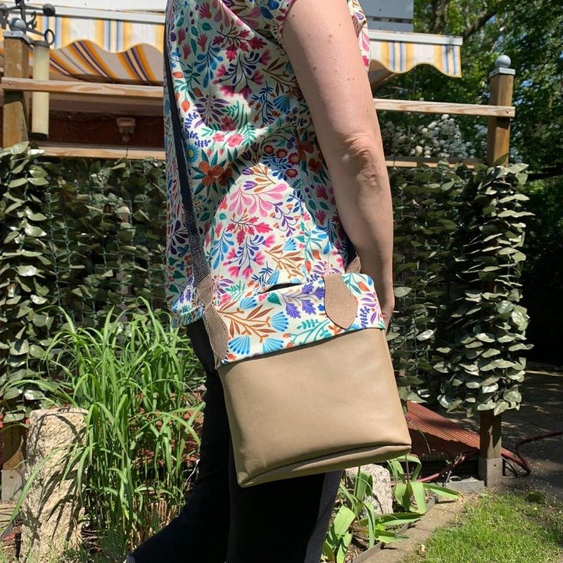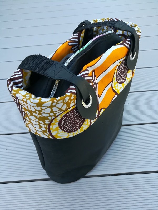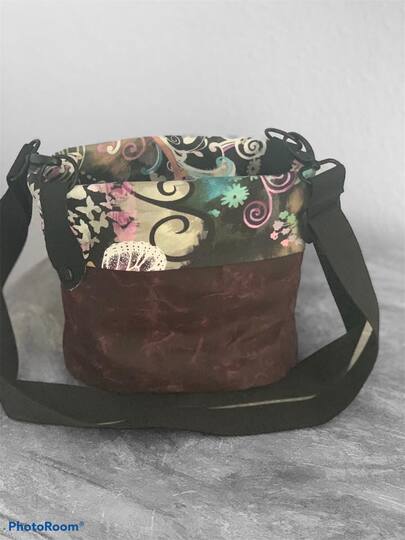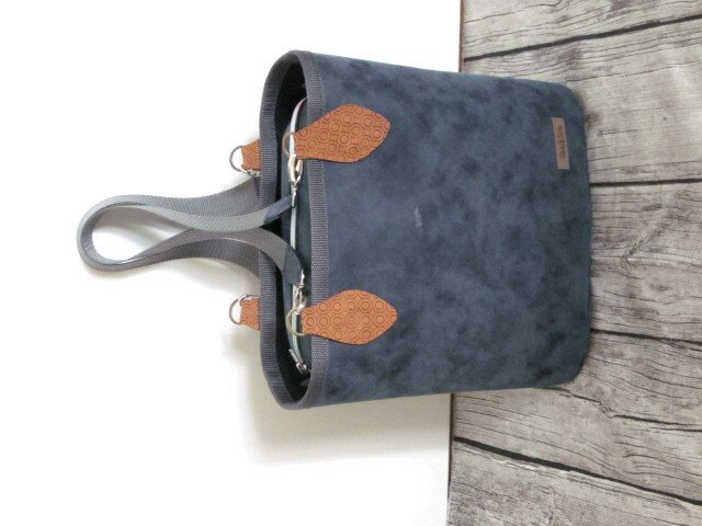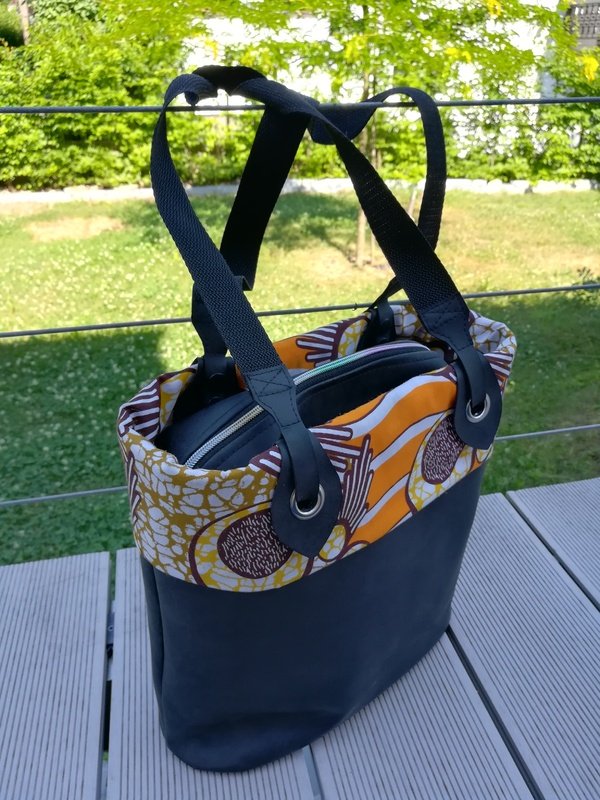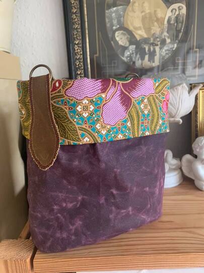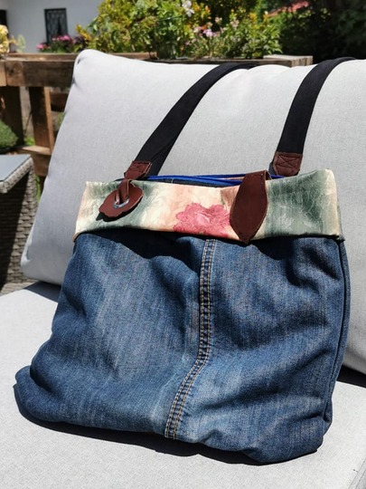 Genäht wird die Tasche aus festen Materialien wie z.B. Kunstleder, Möbelbezugsstoff, Wachstuch.
