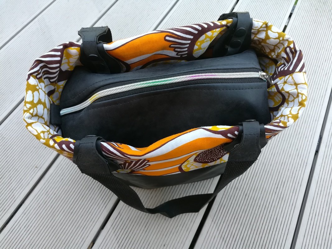 Damit alles gut und sicher in der Tasche verstaut ist, bekommt die Kragig eine Einsatztasche, deren Oberseite z.B. passend zur Außentasche genäht werden kann. Die Einsatztasche ist eine separate Tasche, die mit Hilfe der Träger mit der Außentasche verbunden wird.