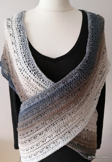 Dann ist Girls Dream 3-in-1 die richtige Wahl. Du kannst dir eine breite Stola, ein Shirt oder eine leichte Jacke häkeln oder ein raffiniertes, verkreuztes Shirt - ganz wie du möchtest.