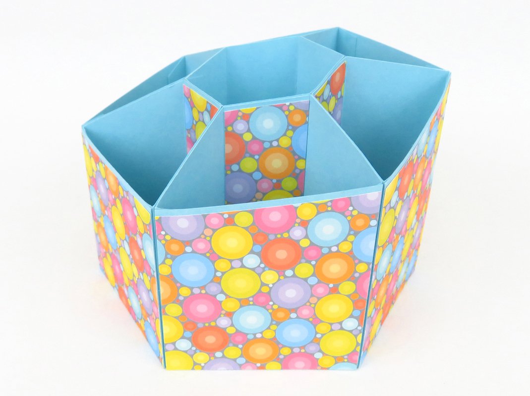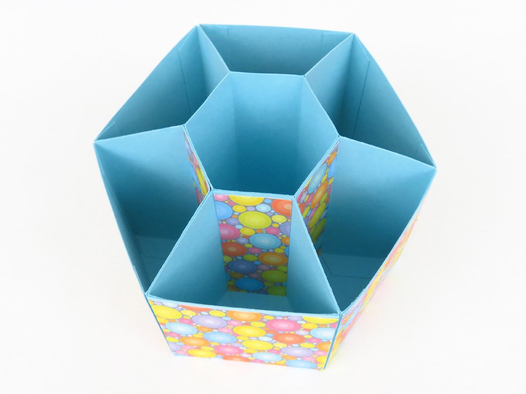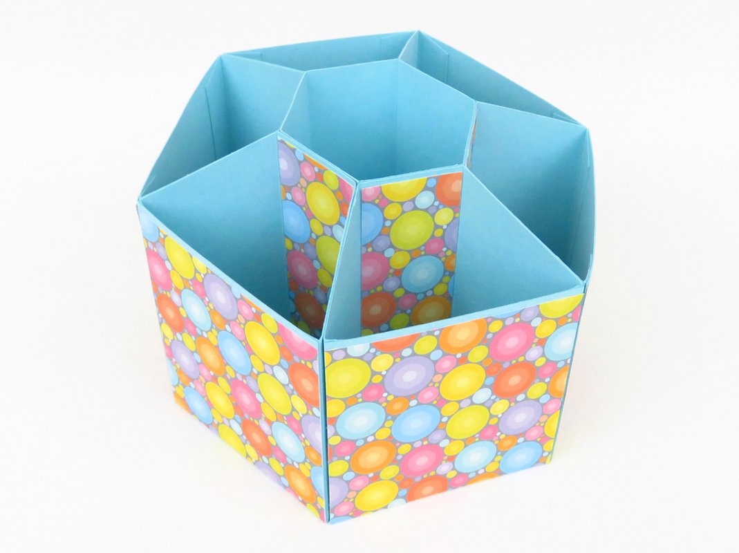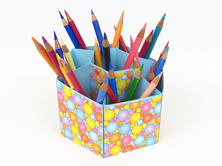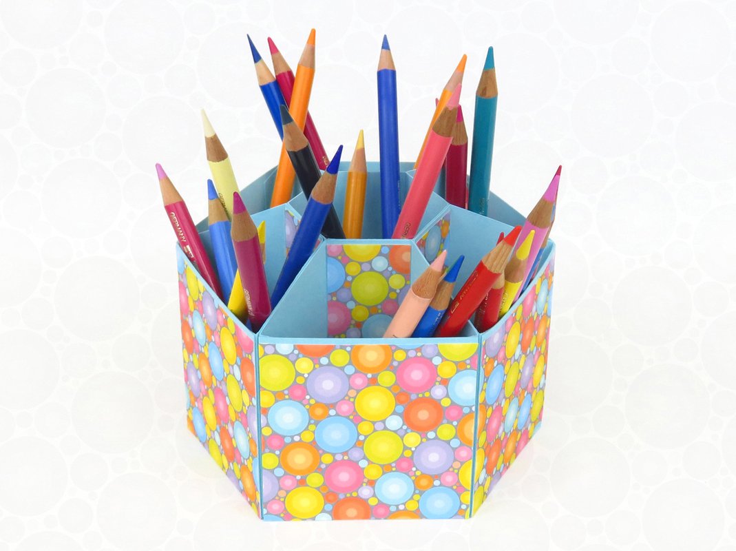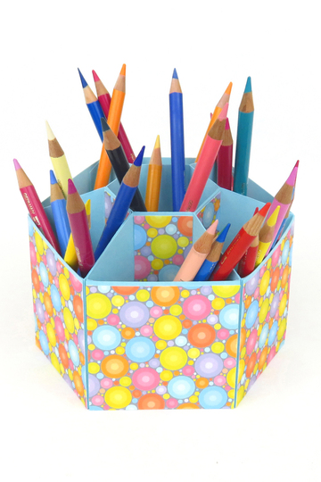 Mit seinem farbenfrohen Muster weckt dieser Stiftehalter Kreativität und spornt dazu an, viele bunte Bilder zu malen. Die unterschiedlich hohen Fächer erweisen sich als sehr praktisch beim Unterbringen von unterschiedlich hohen Stiften.