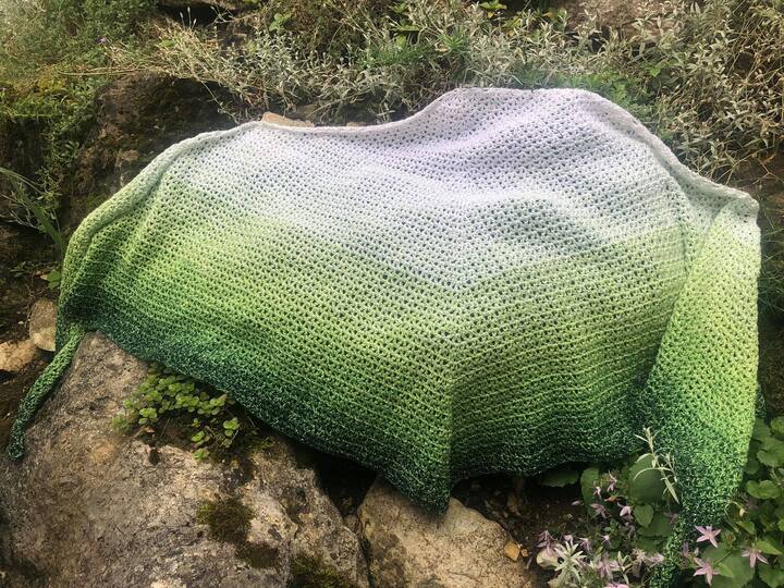 Hier findet ihr ein luftiges Sommertuch, dass sich auch wunderbar für meliertes Garn eignet.