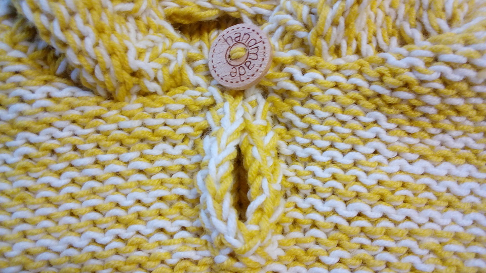 z. B. Linie 5 "Corafino" von ONline (175m/50g) 200g in gelb und 150g in weiß, 1 Knopf