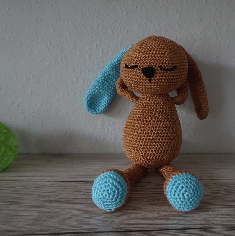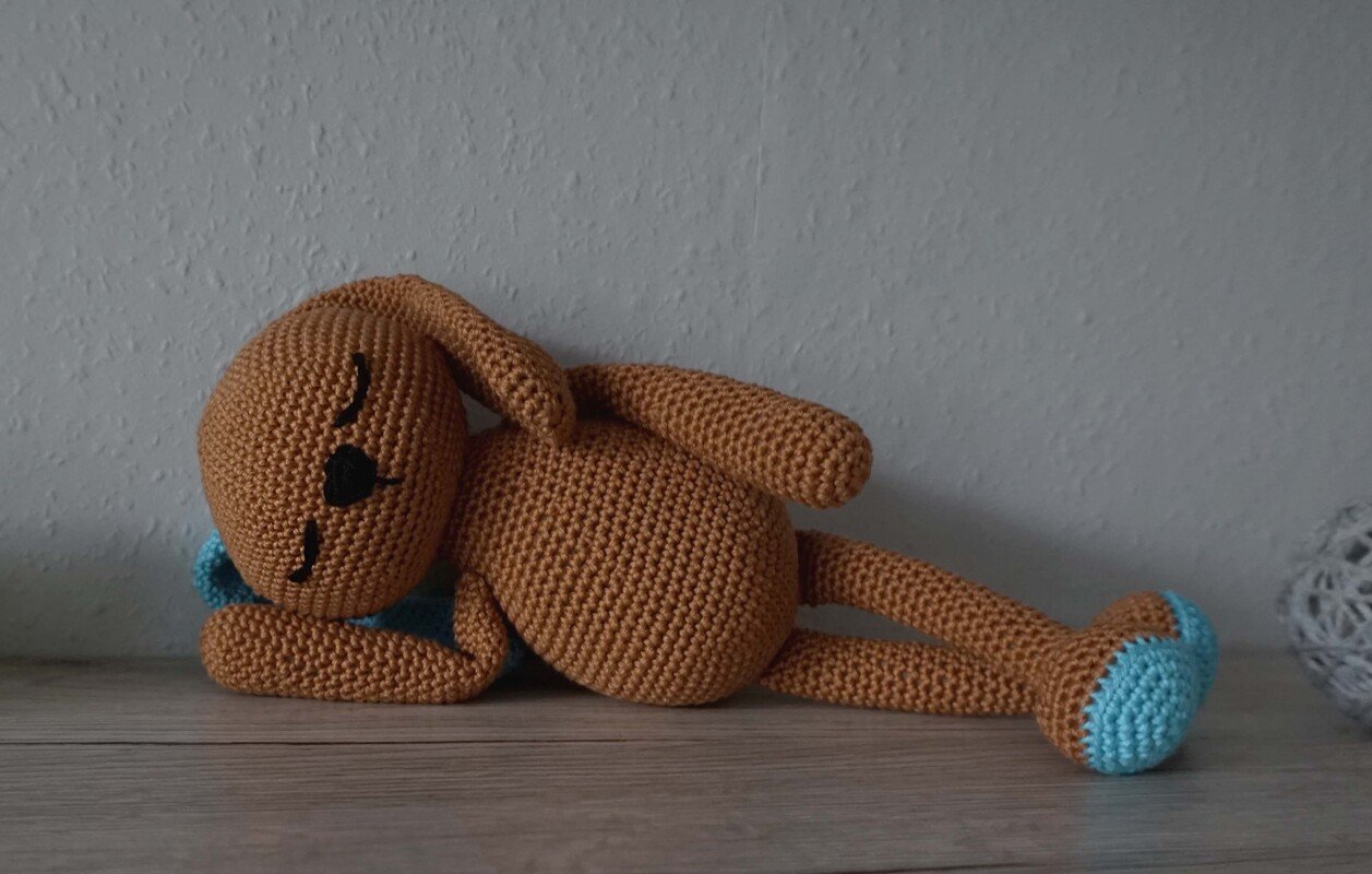 Mit dieser Häkelanleitung kannst du einen süßen schlafenden Hasen namens Bella häkeln.