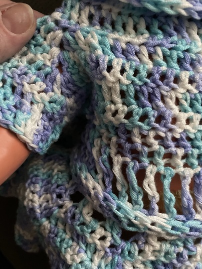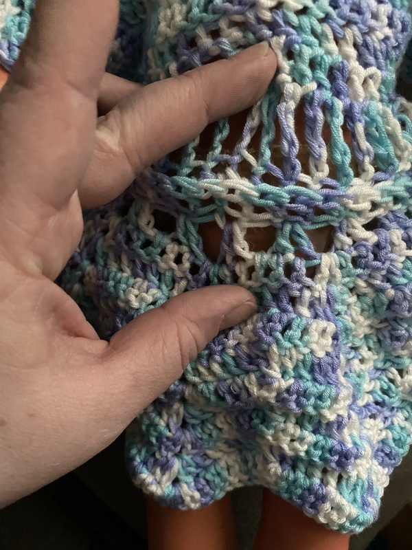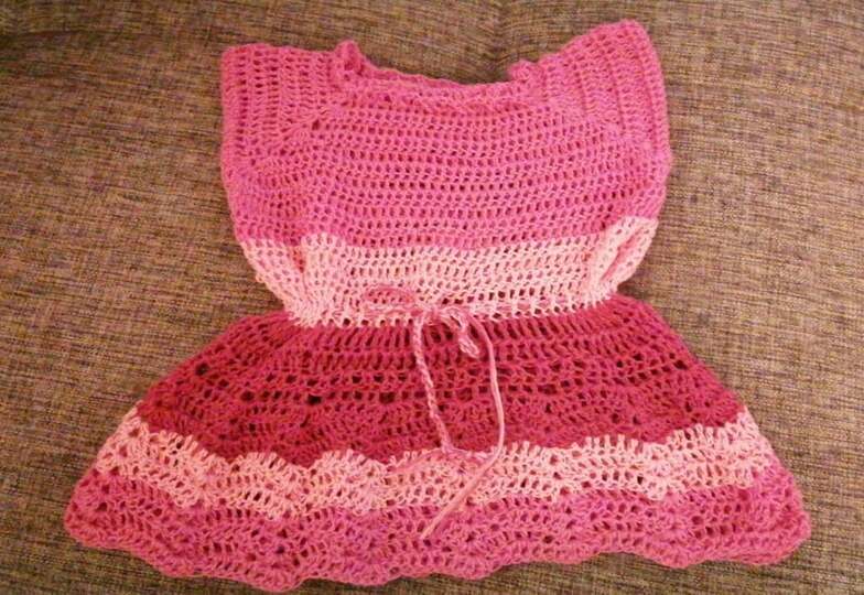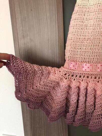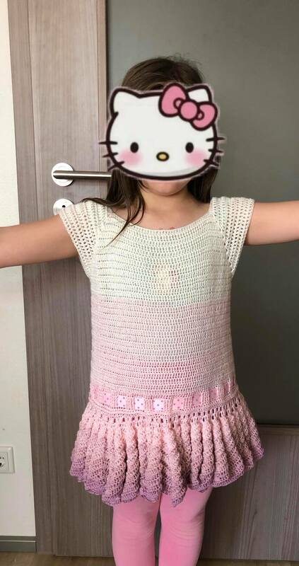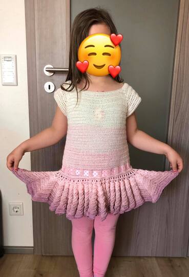 Das Kleid ist ebenso für eine nur ein paar cm große Puppe wie für Mädchen in jedem Alter häkelbar.