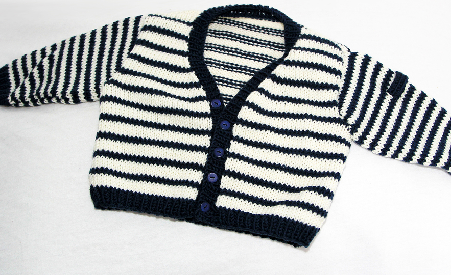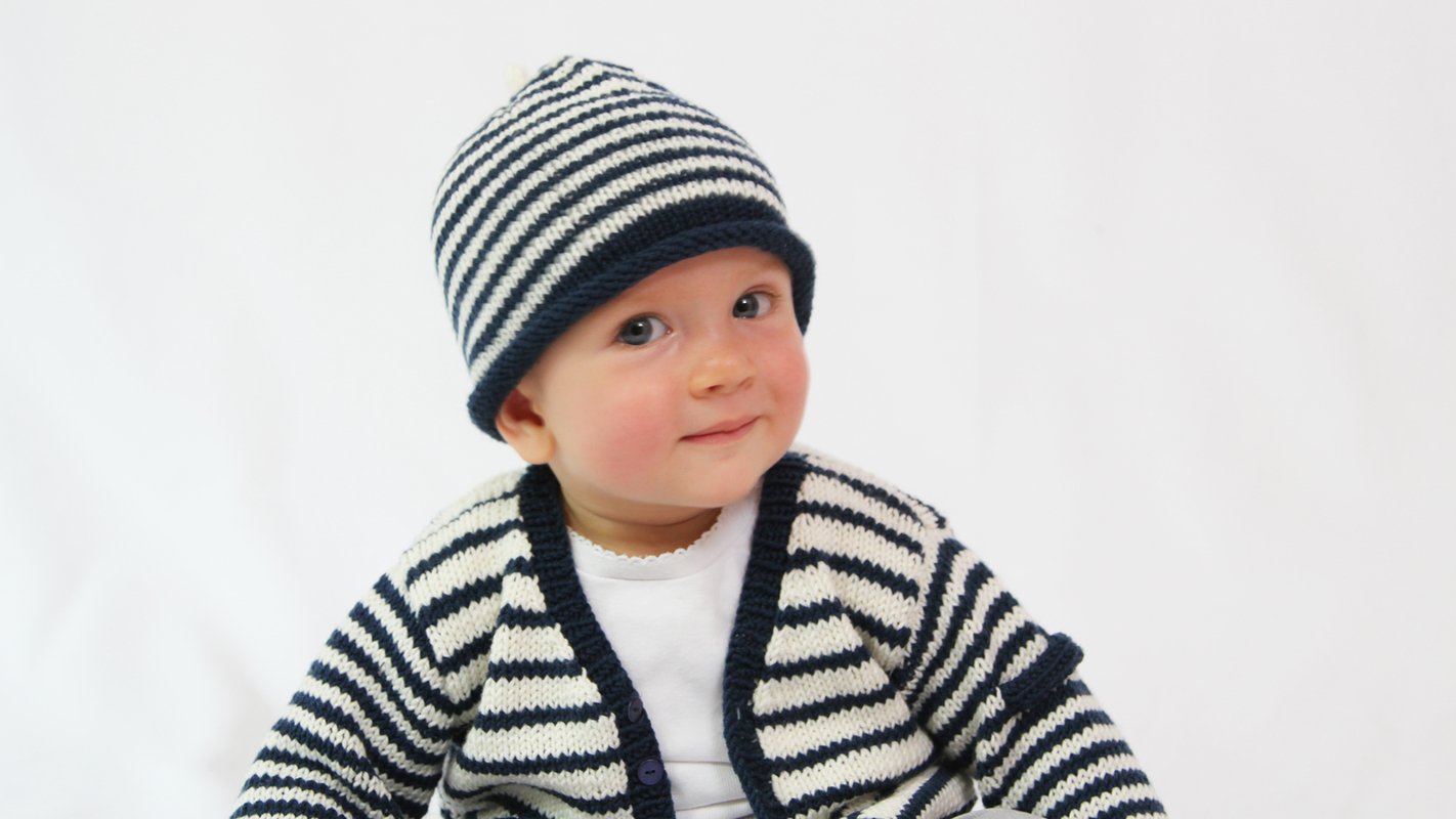 Downloadanleitung zum Stricken des coolen Ringelcardigans JULIUS & JULIA für Babys und Kleinkinder von 0-2 Jahre in 3 Größen.