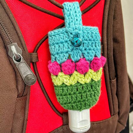 Immer flott ein Desinfektionsmittel zur Hand? Kein Problem! Mit diesem Desinfektionstäschchen baumelt das Fläschchen in Reich- und Sichtweite und kann schnell eingesetzt werden. Ausserdem ist es ein frischer Hingucker, ist schnell gehäkelt und ist sicher ein tolles kleines Geschenk, denn nicht nur in der Pandemie, sondern auch so sollte man sich ab und an unterwegs die Hände desinfizieren.