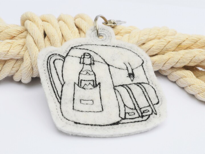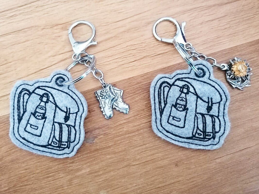 als ITH Stickdatei für Schlüsselanhänger oder Anhänger an Taschen, Beutel, Rucksäcken und vieles mehr!