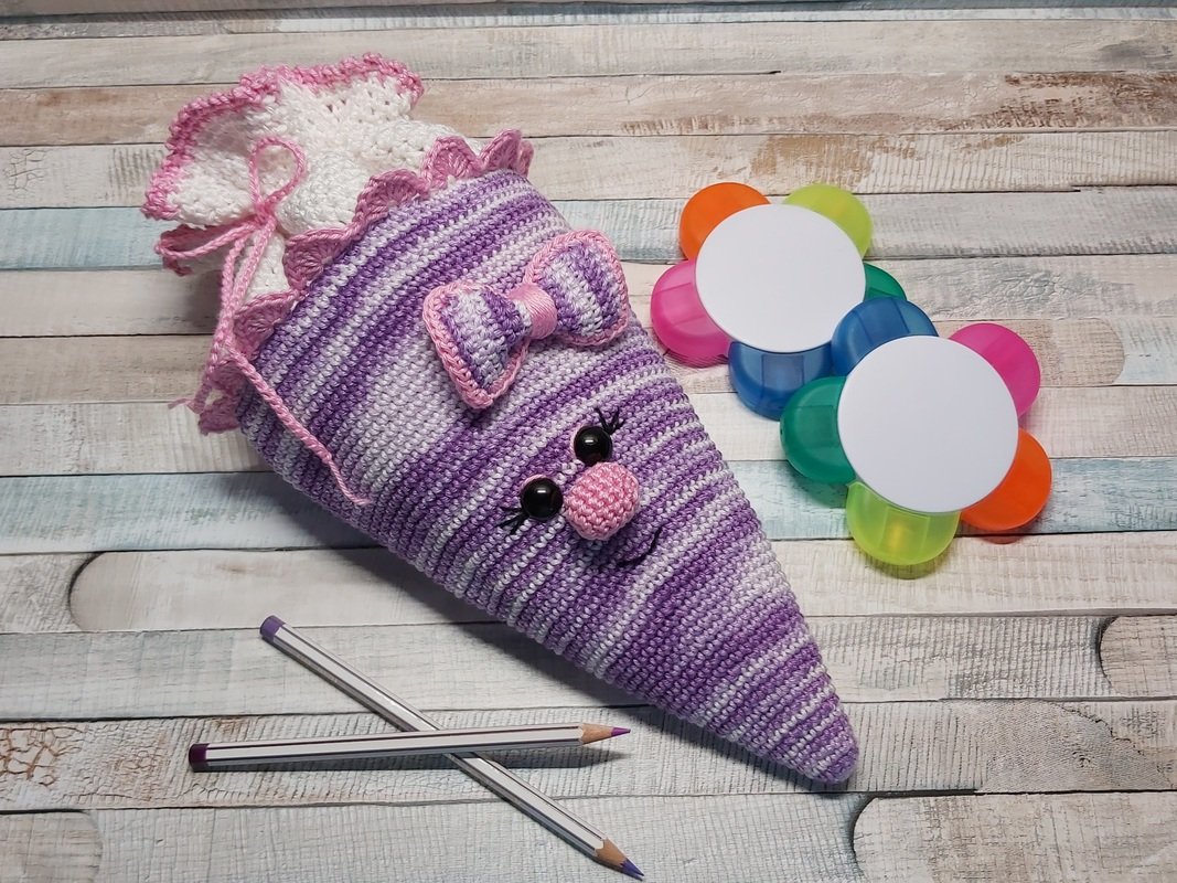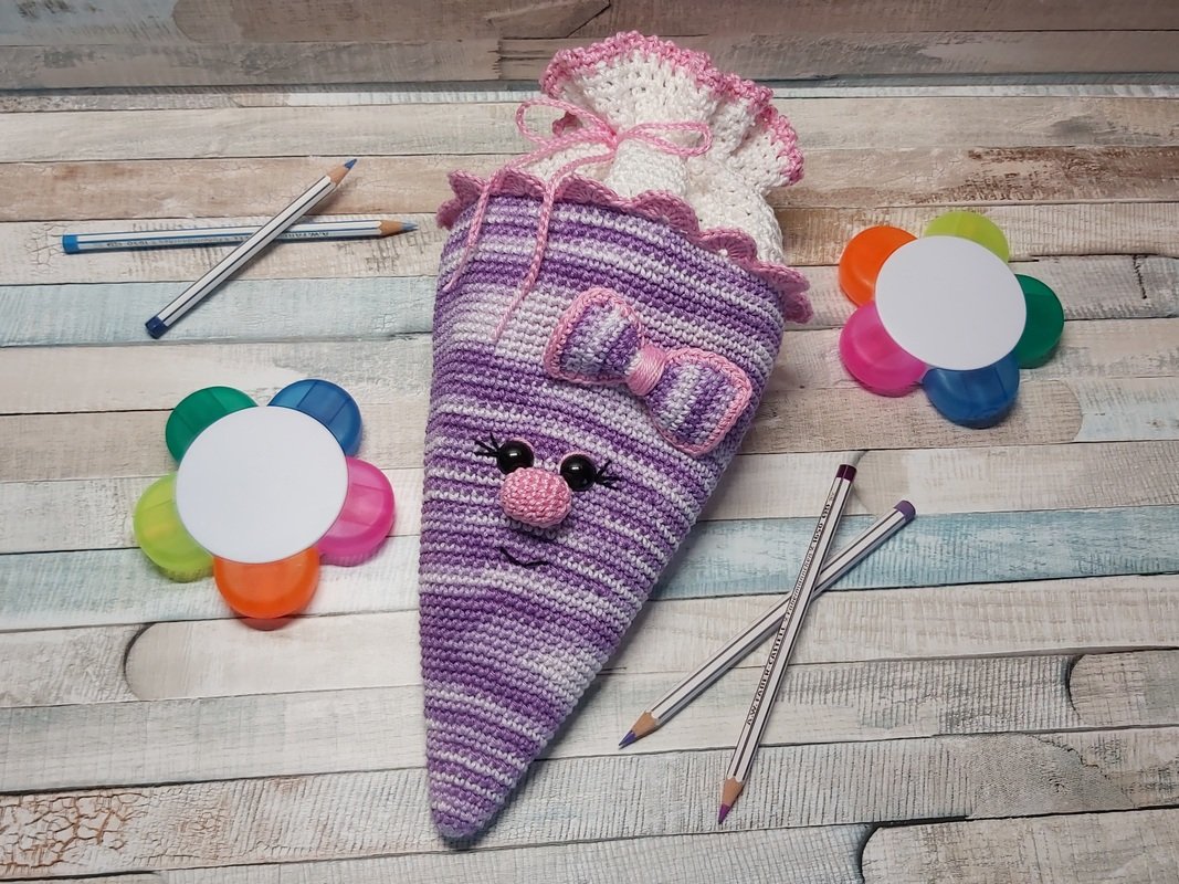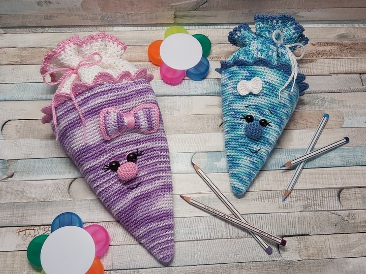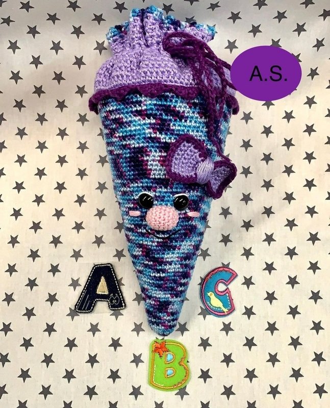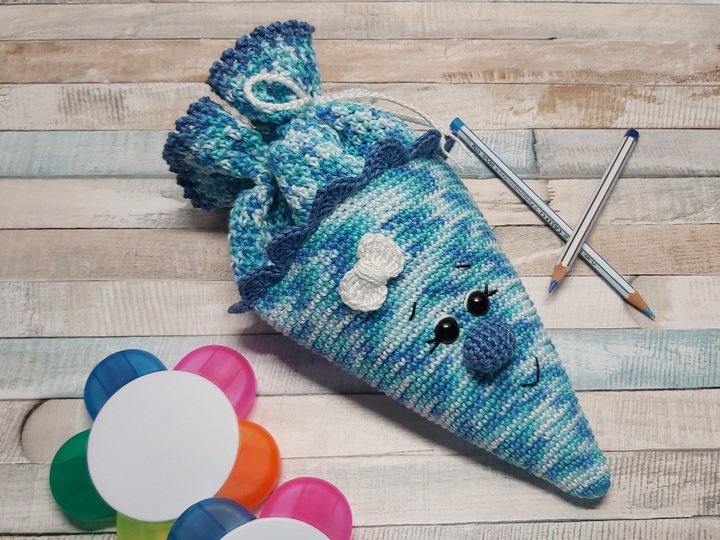 Die Schultüten wurden mit Baumwollgarn (50g-125m) und einer 2,5 Nadel gehäkelt.
