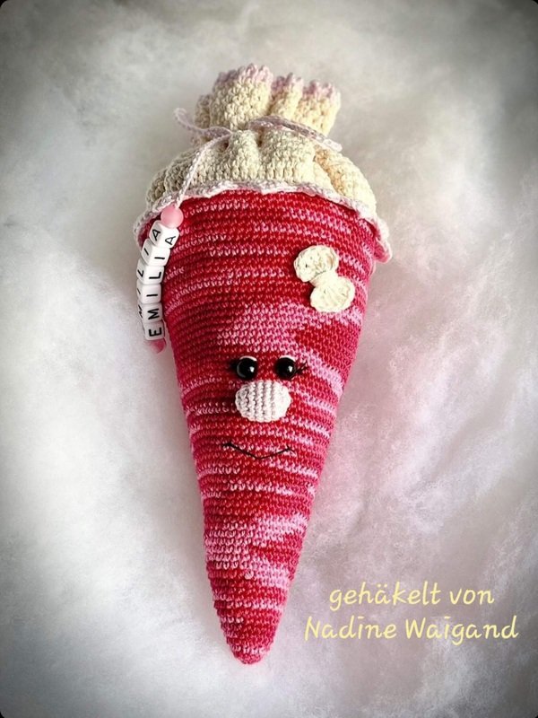 Mit dieser Häkelanleitung kannst Du diese Schultüte-Zuckertüte ganz einfach häkeln!