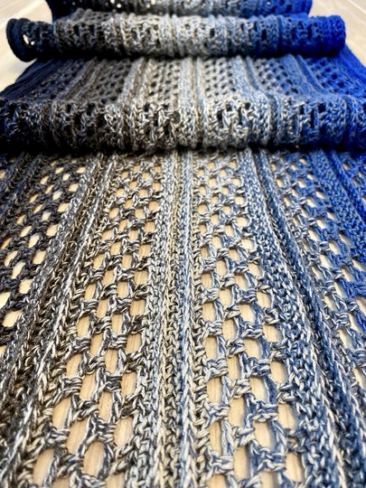 Die Größe ist individuell anpassbar. Meine Stola wurde ca. 170 cm lang und 35 cm breit