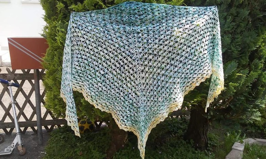 Dieses Tuchmuster ist ein absolut anfängertaugliches Muster, da es nur aus Luftmaschen, Stäbchen und festen Maschen besteht. Es ist ein recht luftiges Muster, was sehr gut für laue Sommerabende zum Einkuscheln geeignet ist. Je lockerer du häkelst, desto luftiger und größer wird das Tuch! So haben meine Tester von 170x75 cm bis zu 305x110ccm viele verschiedene Größen erreicht.
