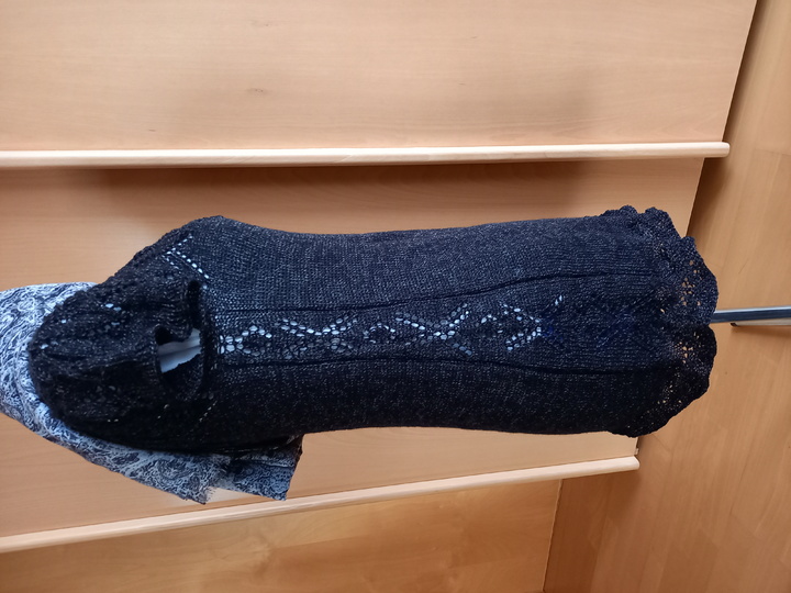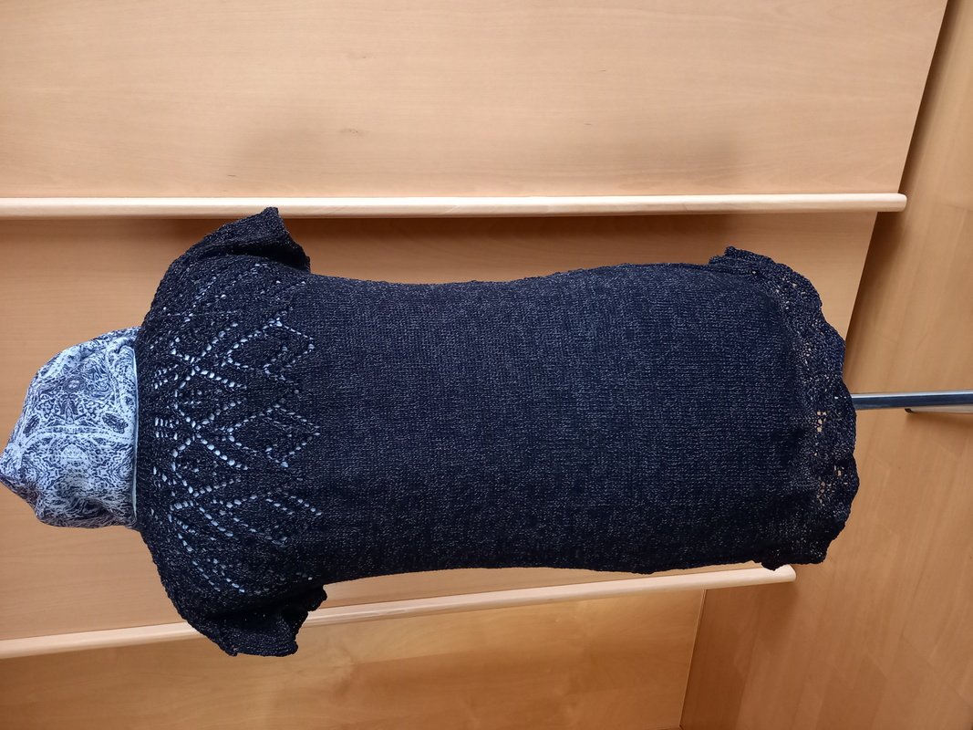 Die Größe ist variabel und wird ähnlich wie beim RVO beim Stricken individuell angepasst. Daher kann die Anleitung für alle Damengrößen heran gezogen werden. In der Anleitung sind Fotografien in unterschiedlichen Größen mit jeweiliger Mengenangabe enthalten.
