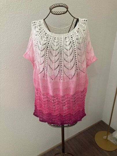 Das schöne an dieser Strickart ist, das es für alle Größen geeignet und auch erweiterbar ist. So ist aus meiner Idee nicht nur ein Shirt entstanden sondern auch ein schlichtes aber absolut ausgangsfähiges Sommerkleid!