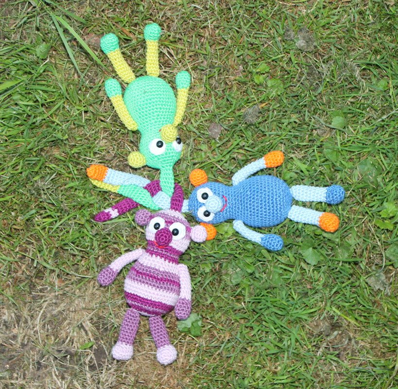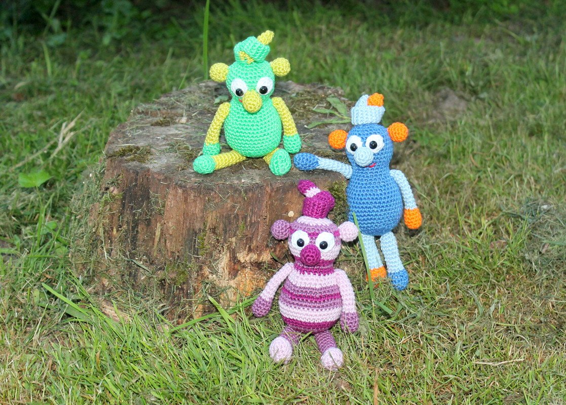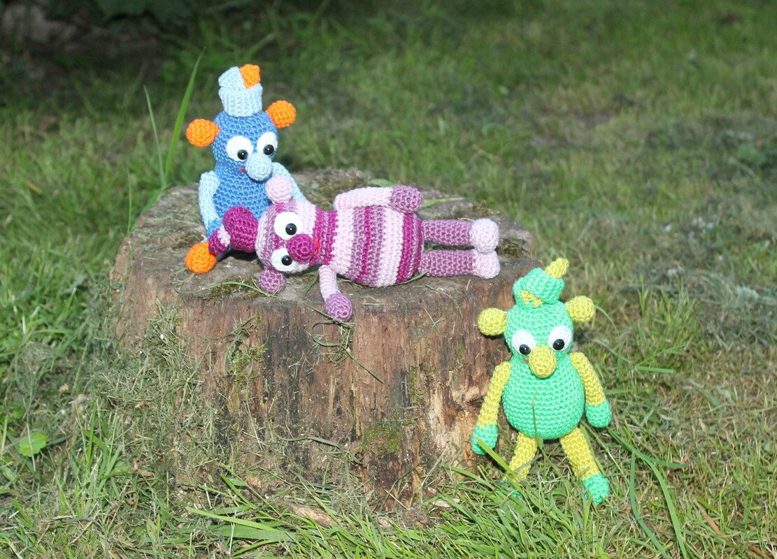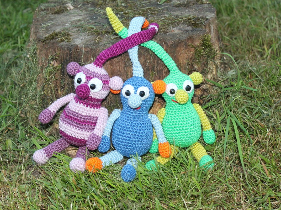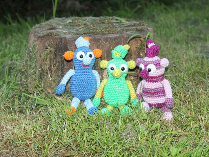 Die Knötlinge werden fertig gehäkelt mit Knoten auf dem Kopf ca 22 cm groß.