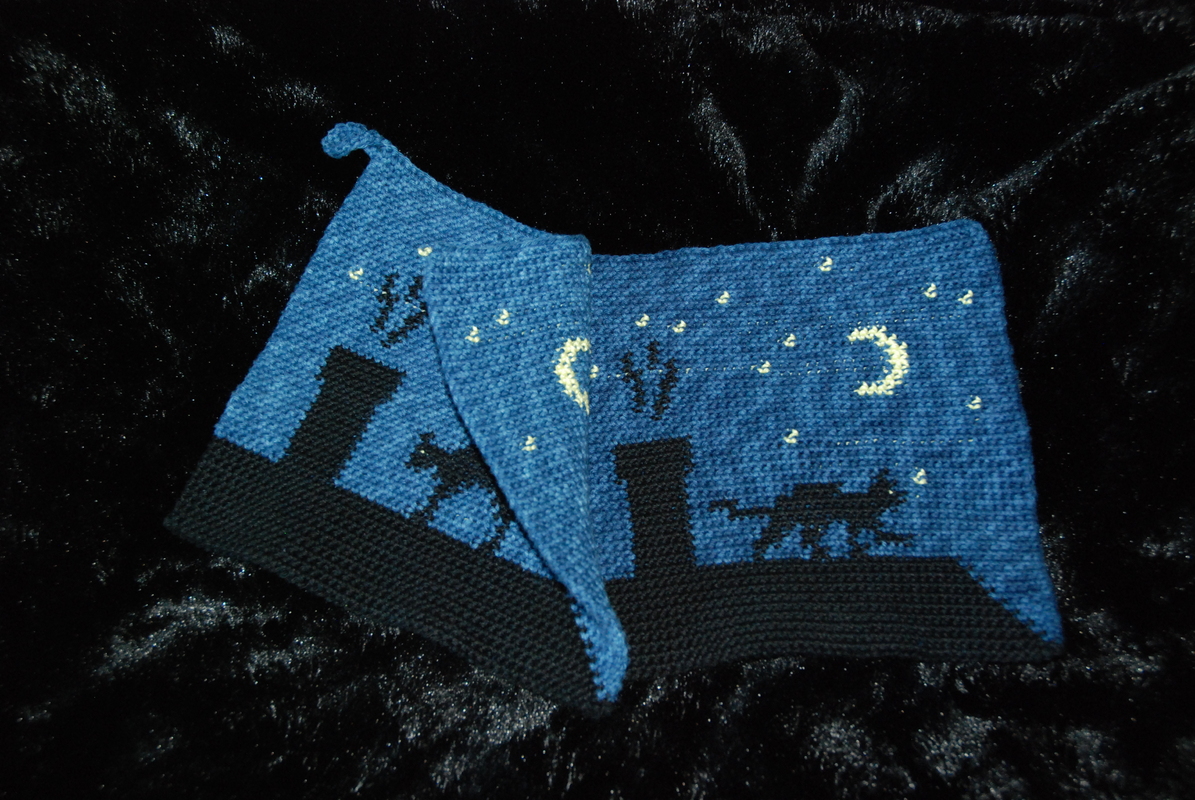 Ein toller Topflappen für Katzenliebhaber. Die Motive dieser Topflappen sind vier verschiedene Motive einer Katze auf dem Dach eines Hauses.