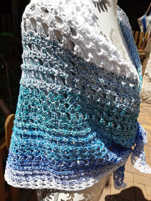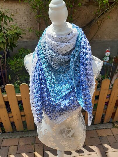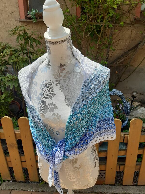ob als elegantes Schultertuch oder als wärmendes Dreieckstuch an kalten Tagen, dafür eignet sich das Tuchmuster sehr gut.