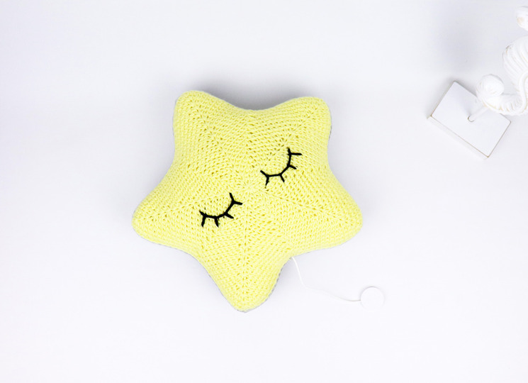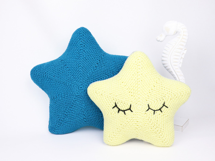 Diese Häkelanleitung besteht aus bebilderter Anleitung zum Häkeln von zwei Kissen in der Sternenform. Diese Kissen sind sehr schnell und leicht zu häkeln und sind in nur ca. 6-7 Stunden (für jedes Kissen) fertig, sodass sie auch als Geschenk für Freunde und Verwande geeinget sind. Die Anleitung ist für Anfänger mit Vorkenntnissen geeignet. Man kann auch eine Spieluhr daraus machen.