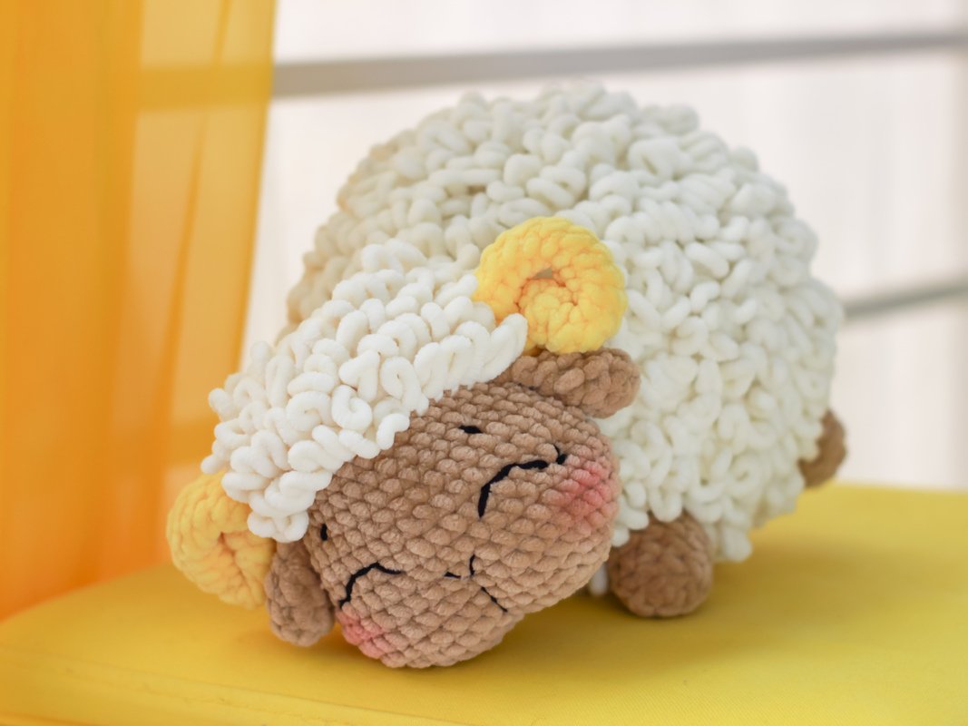 Mit dieser Häkelanleitung können Sie ein Schaf aus Plüschgarn nach Olya Usolya Originalanleitung häkeln.