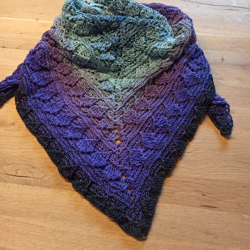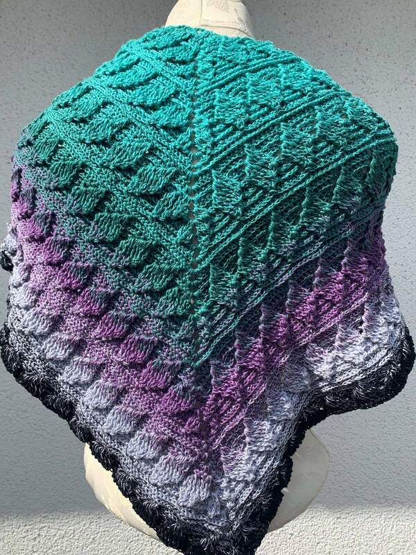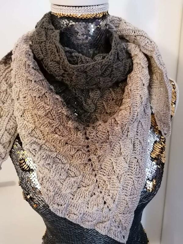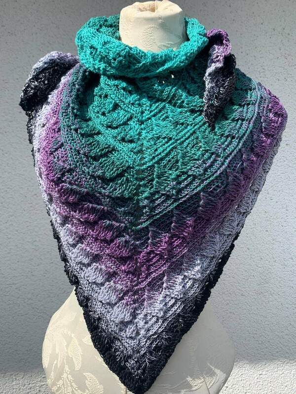Die Anleitung zum Tuch besteht aus schriftlich ausformulierten Reihen und beinhaltet eine Häkelschrift.