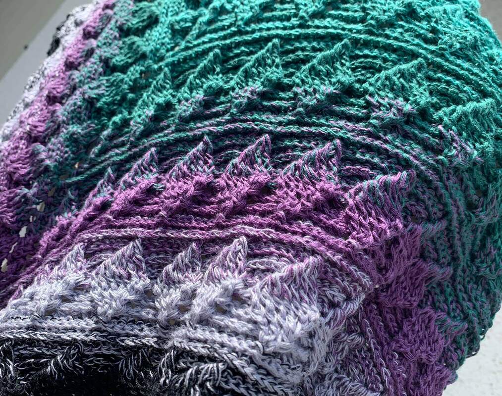 Das Tuch Palina besteht aus sich immer wiederholenden Reihen, die ein schönes strukturiertes Gesamtmuster ergeben.