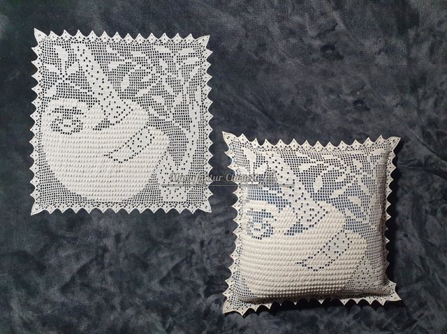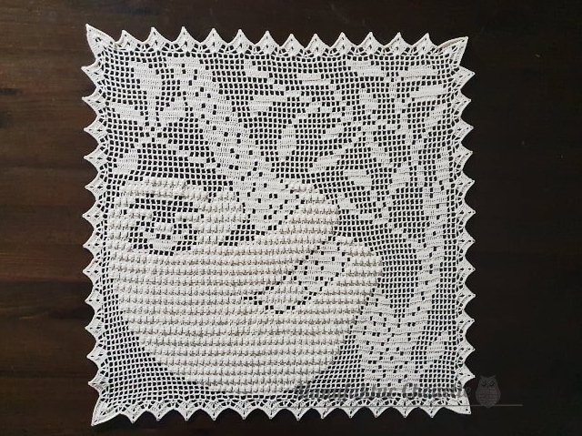 17 Seiten Anleitung mit 2 Varianten des Zählmusters. Der Rand ist in Häkelschrift und ZUSÄTZLICH ausführlich schriftlich mit vielen Fotos erklärt. Im Anhang gibt es eine kleine Auffrischung/ Erklärung zur Filethäkelei.