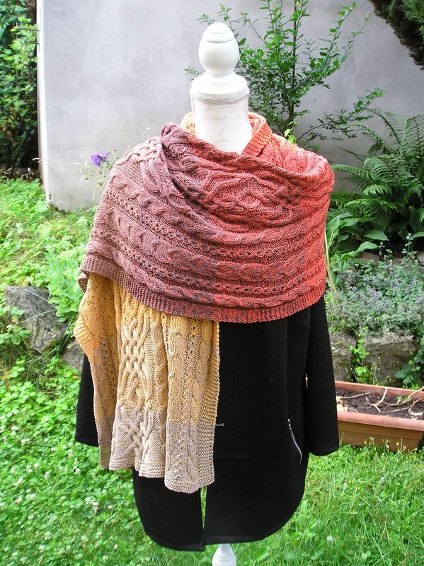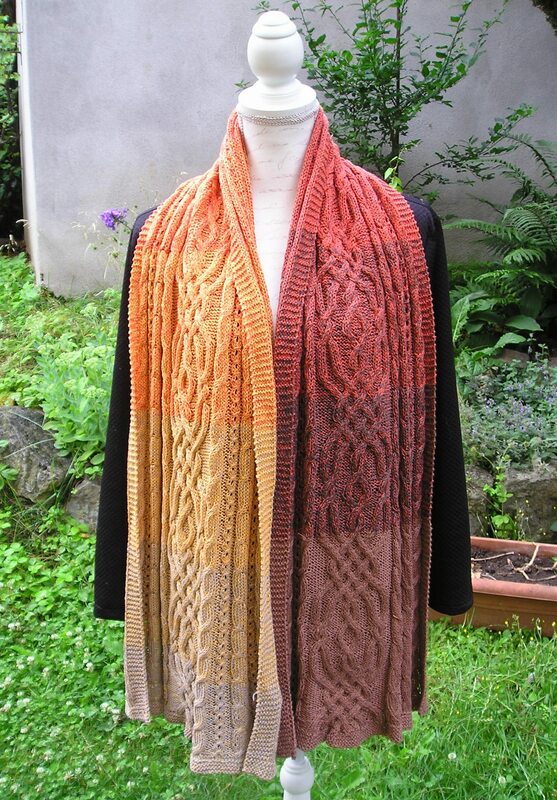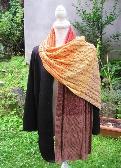 Strickanleitung für den Schal "Orangen mit Zimt" mit verschiedenen Zopfmustern