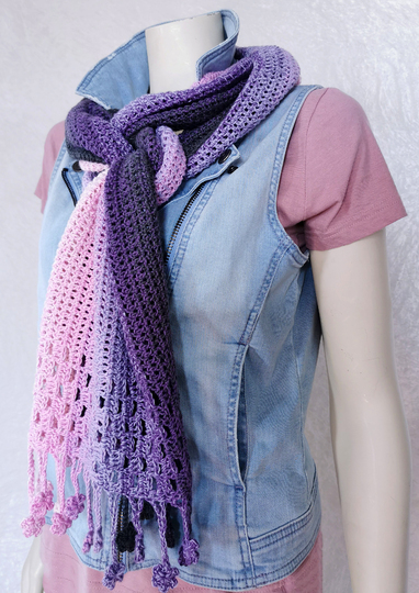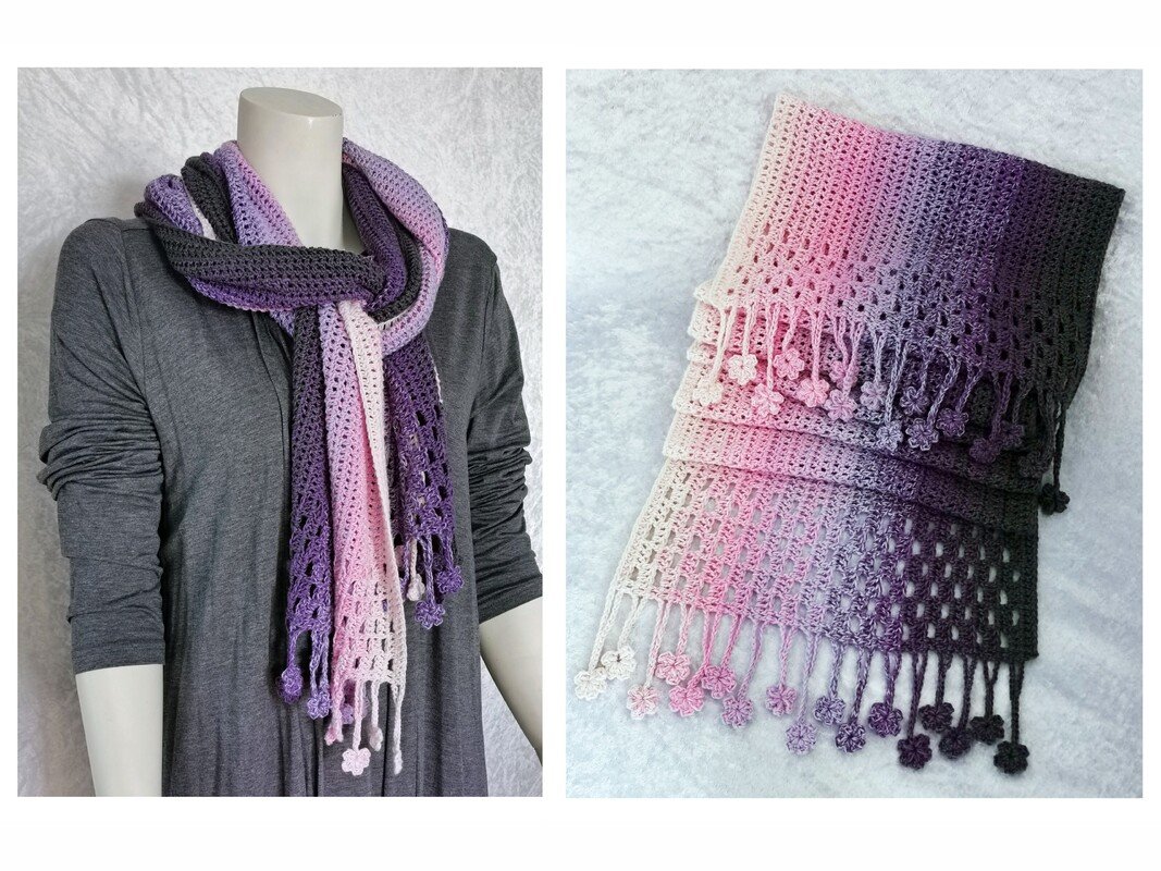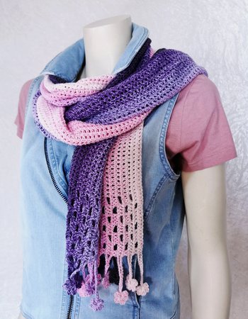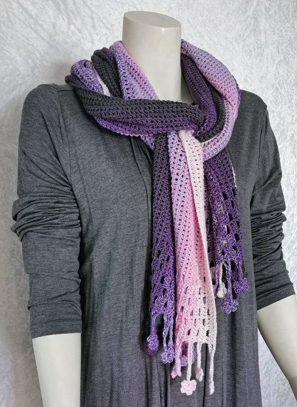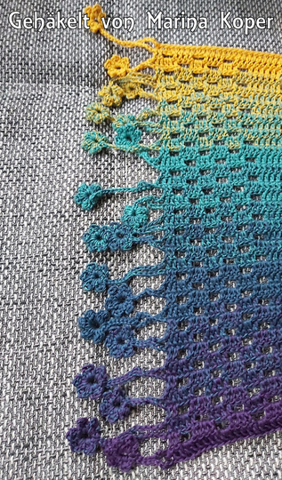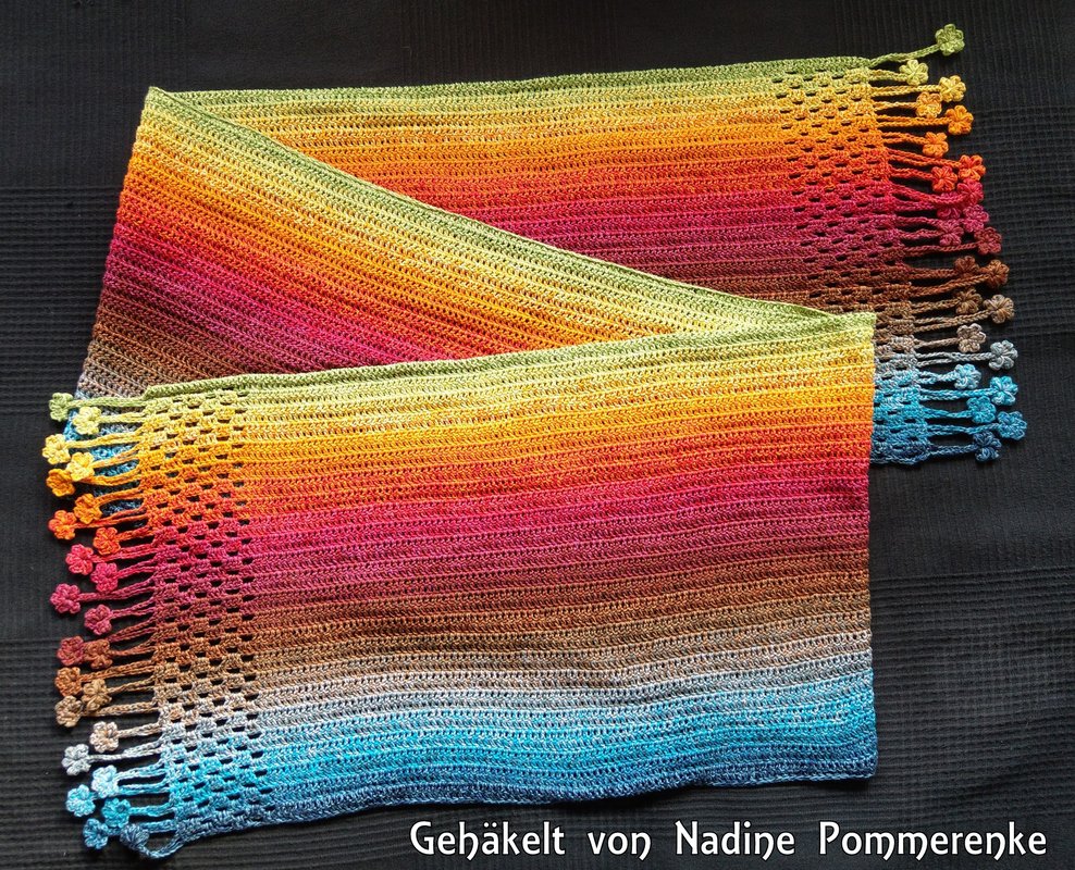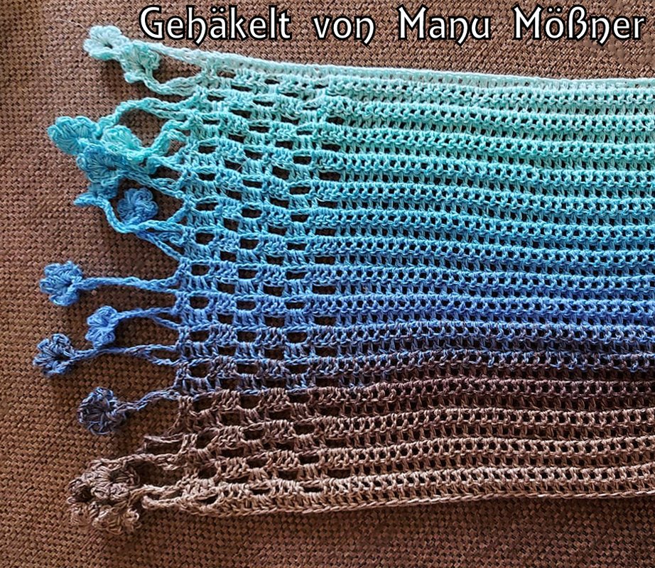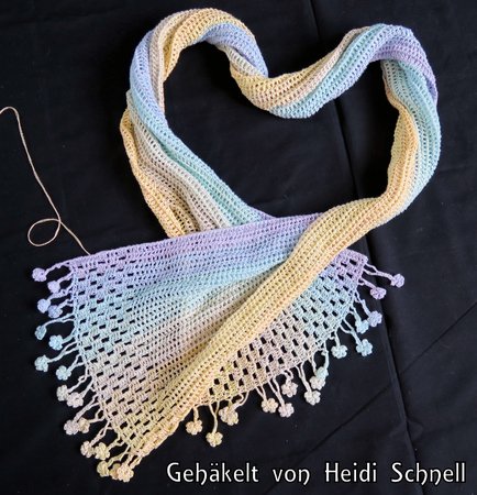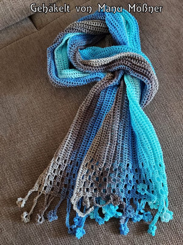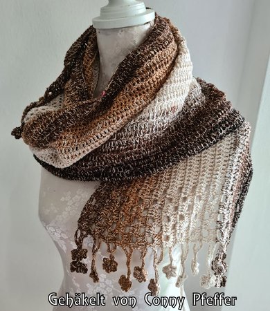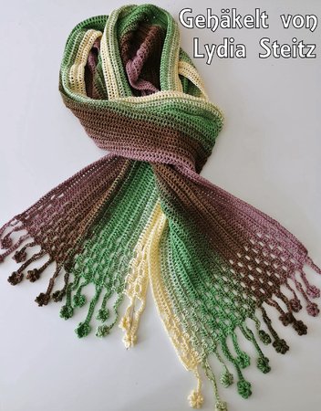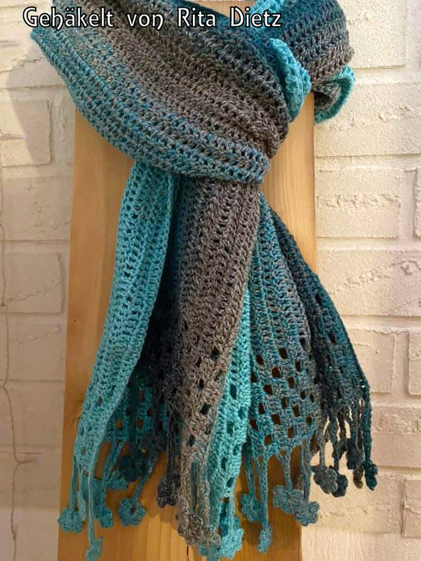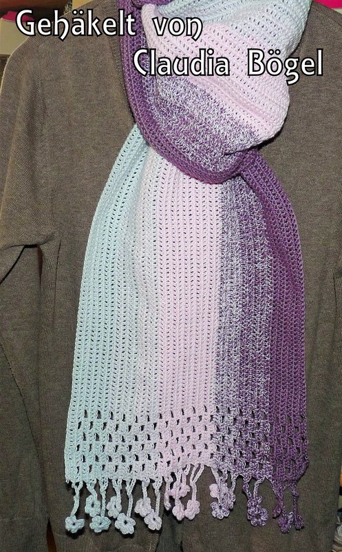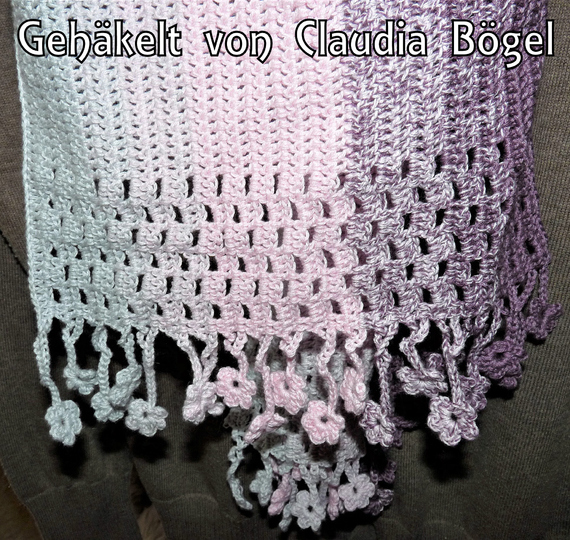 ist ein hübscher gehäkelter Schal, der als Variante meiner Häkelanleitung “Tausendschön” entworfen wurde.