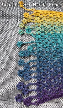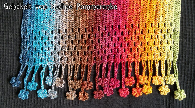 Die Blümchen am Schalrand haben mir sofort gefallen und haben mir beim Häkeln viel Spaß gemacht. 😉