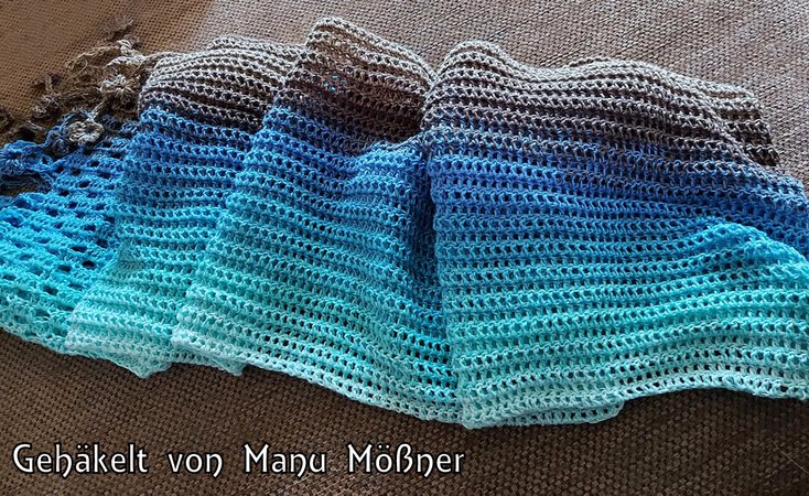 Häkelanleitung Dreieckstuch mit Reliefmuster Blue Lagoon