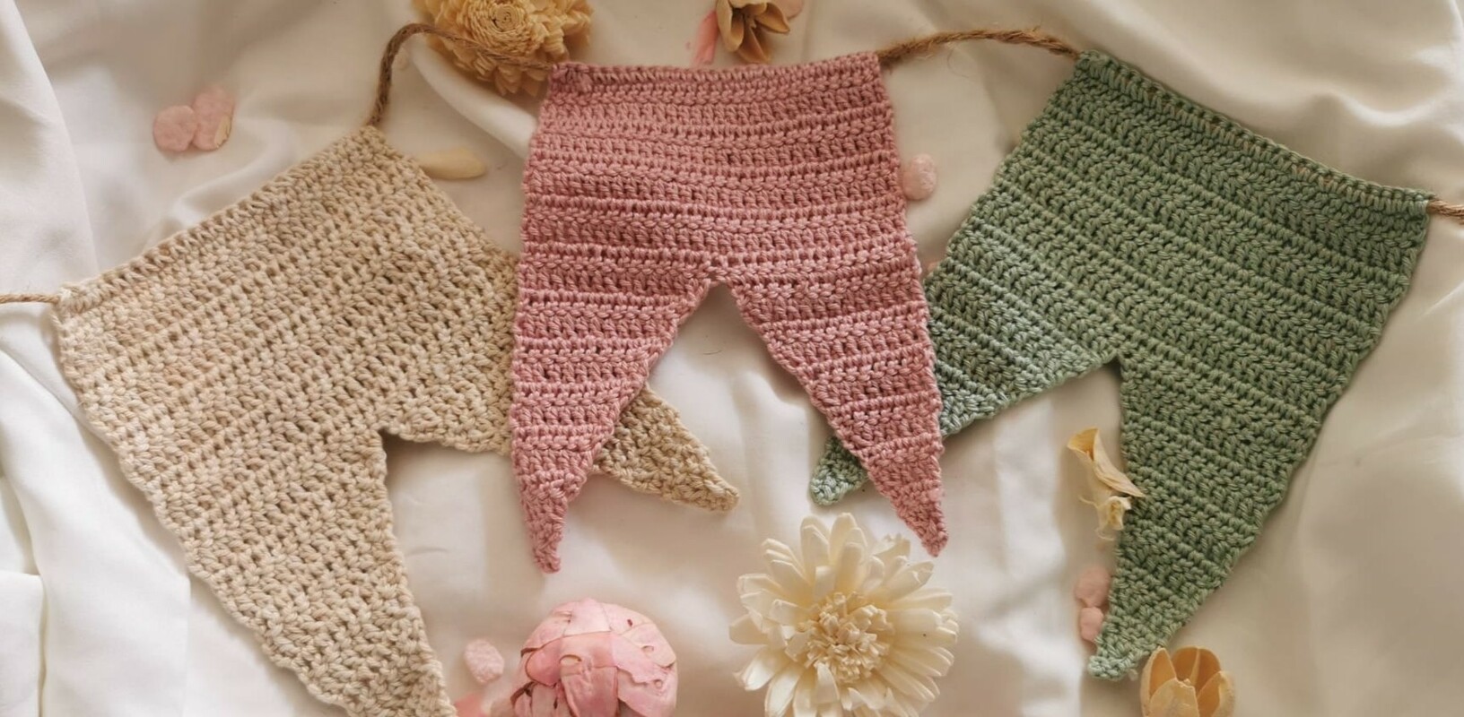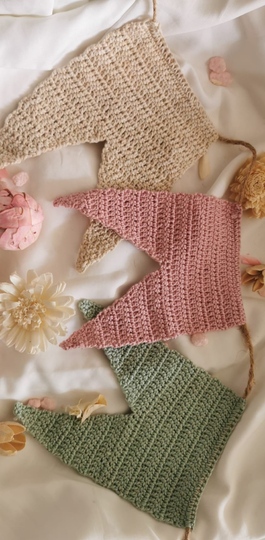 Die länge der Wimpelkette variiert je nach dem wieviele Wimpel du häkelst.