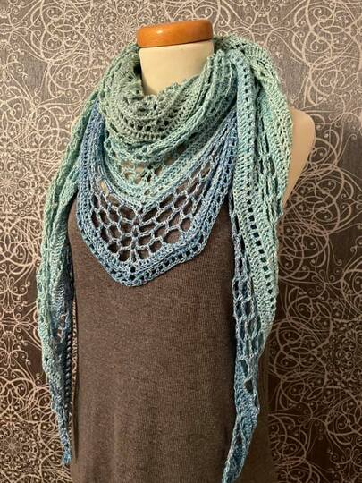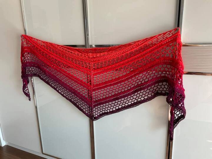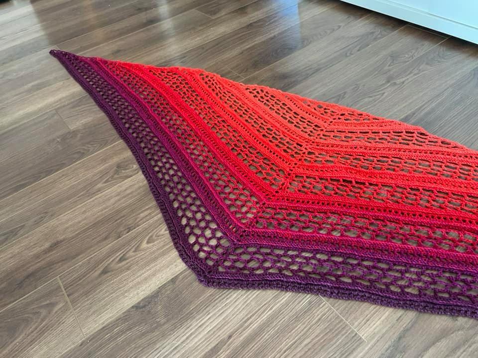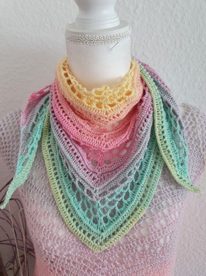 Das Tuch kann in jeder beliebigen Größe gehäkelt werden. Je nach Lauflänge und dicke eures Materials wird euer Tuch unterschiedlich Groß