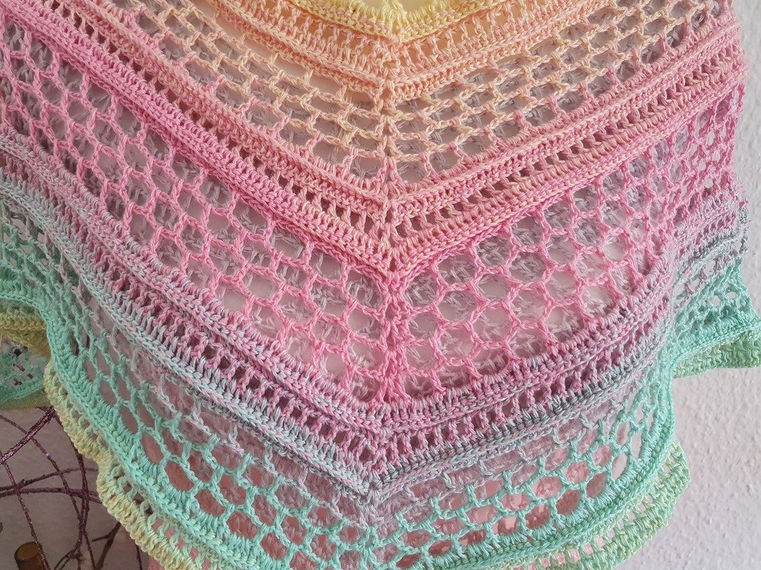 Die Anleitung ist schriftlich und bebildert, sie beinhaltet KEINE Häkelschrift. Auf 10 Seiten, gefüllt mit 52 Reihen und einigen Bildern bekomt ihr gezeigt, wie dieses luftig flache Sommertuch gehäkelt wird. Die Anleitung ist auch für Anfänger geeignet, du solltest allerdings die benötigten Maschen häkeln können.