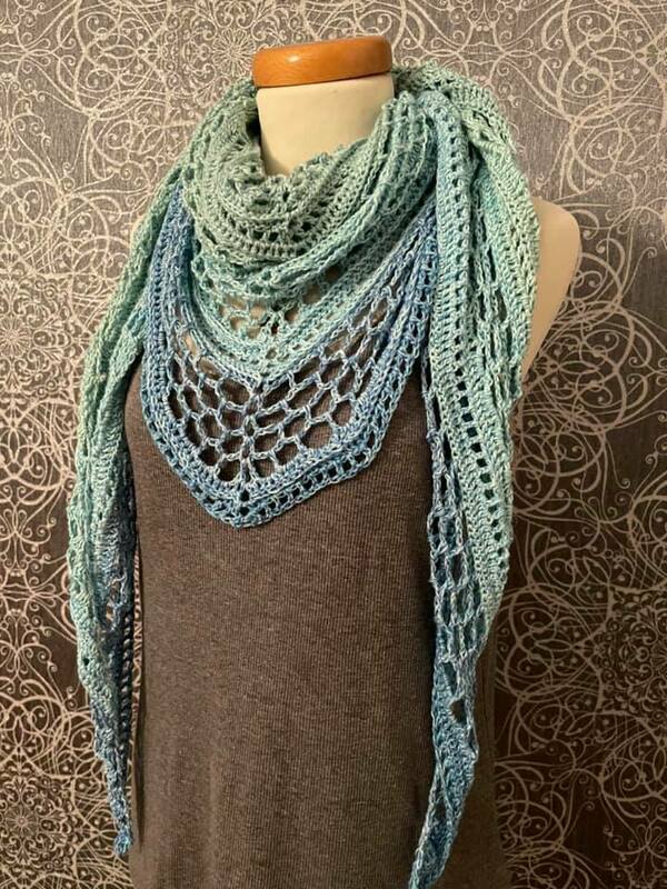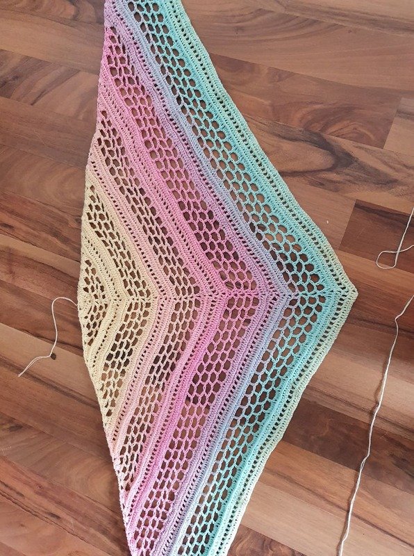 Mit 750m 3 fädigem Garn bekommst du ein ca 230 74 cm großes Tuch