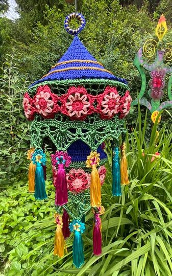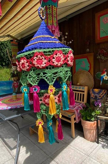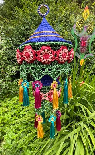 Lampion "Vacanza" ist ein echter Blickfang für Garten, Wohnung, Balkon..usw...und macht immer Freude, wenn man hinschaut....kein Wunder: Hat das häkeln selber schon so Spaß gemacht!