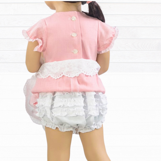 Die Pumphose wurde mit kleinen Rüschen am Po verziert, so dass der Rock den entsprechenden Stand hat und das "Untendrunter" natürlich auch standesgemäß einem Dirndl entspricht.