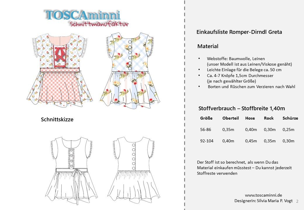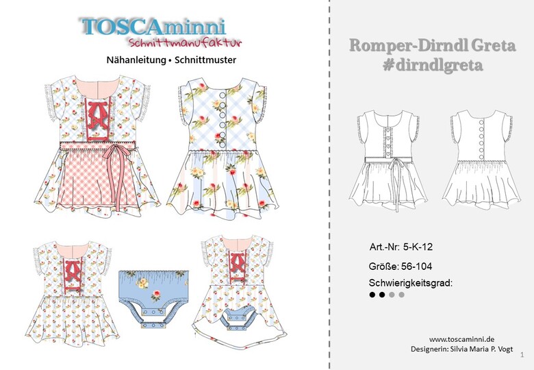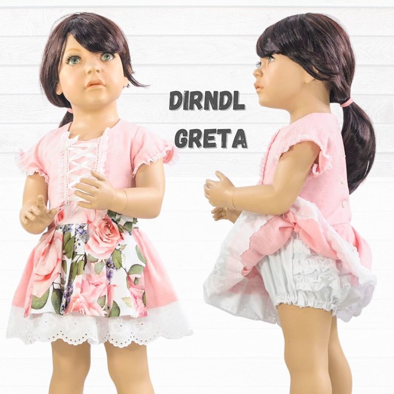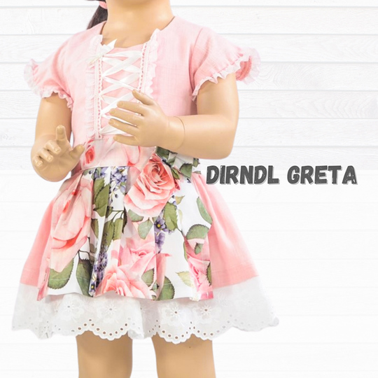 Mit dem Schnittmuster Greta nähst Du Dir einen bezaubernden Romper, der gleichzeitig wie ein Dirndl aussieht. Das Dirndl ist extra für Babies und Kleinkinder konzipiert. Die Schürze ist festgenäht, so dass diese nicht verrutschen kann.
