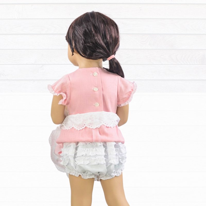 Untendrunter ist es ein Strampelanzug also ein kleiner Body mit Knöpfen, so dass sich ganz leicht die Windeln wechseln lassen.