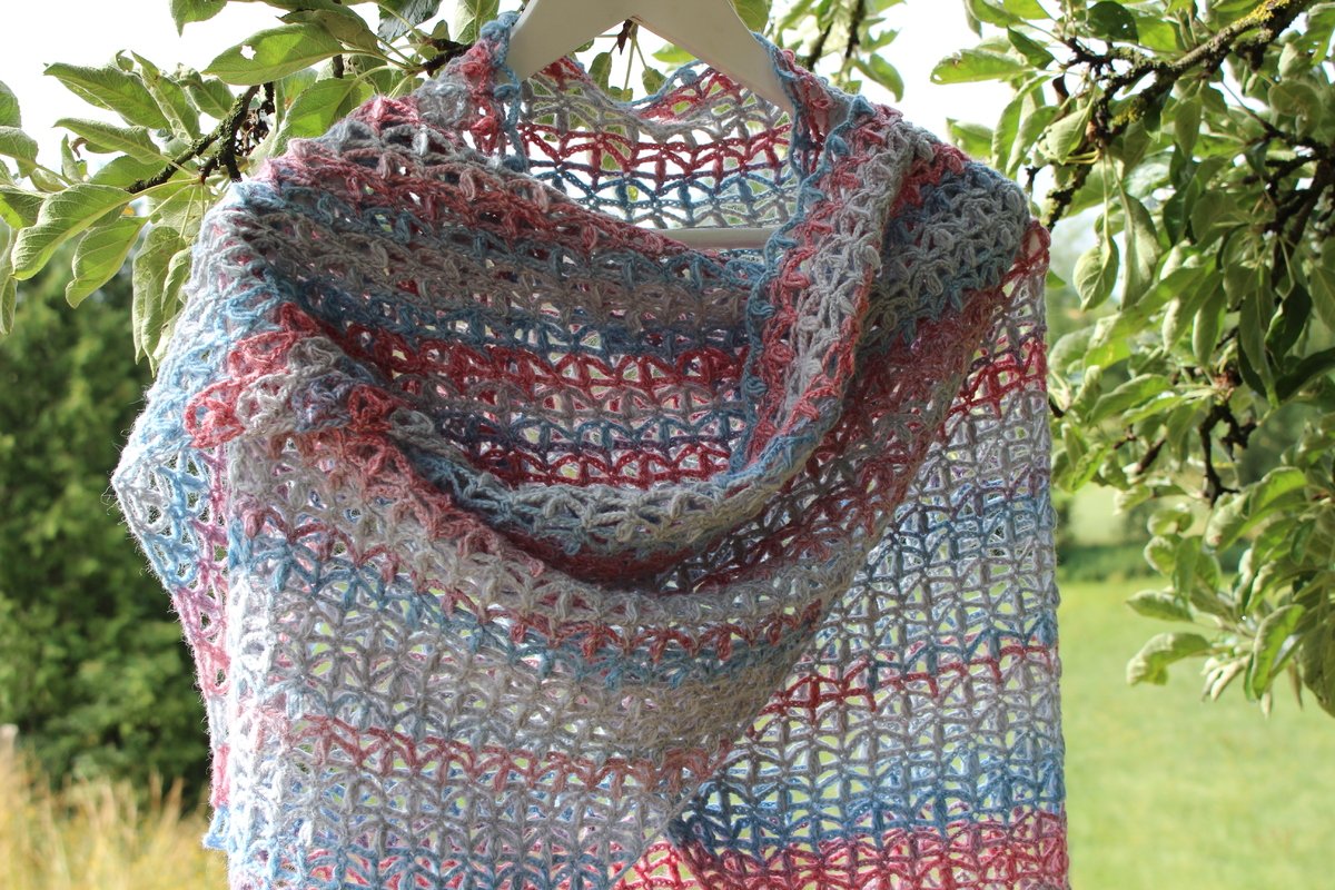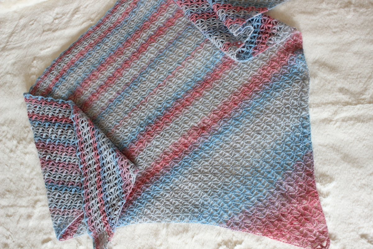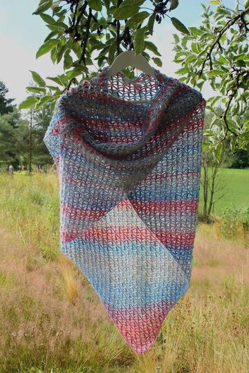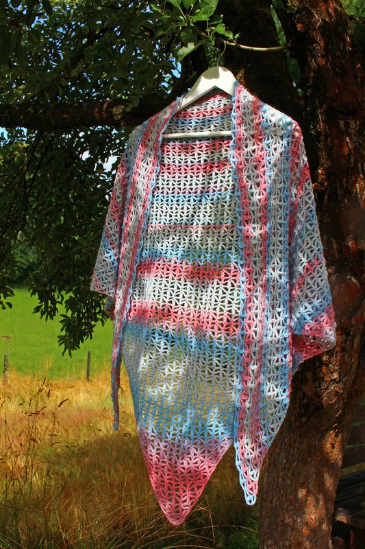 Das Tuchmuster hat die Form eines flachen Dreiecks und schmiegt sich perfekt um die