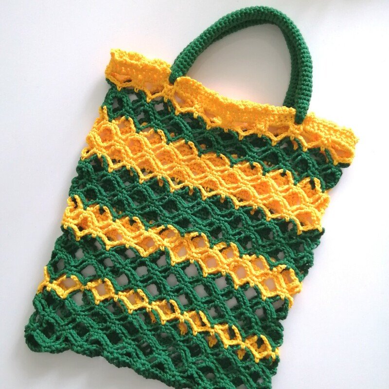 Textliche zusammenfassende Kurzanleitung zum Häkeln von Einkaufsnetzen.