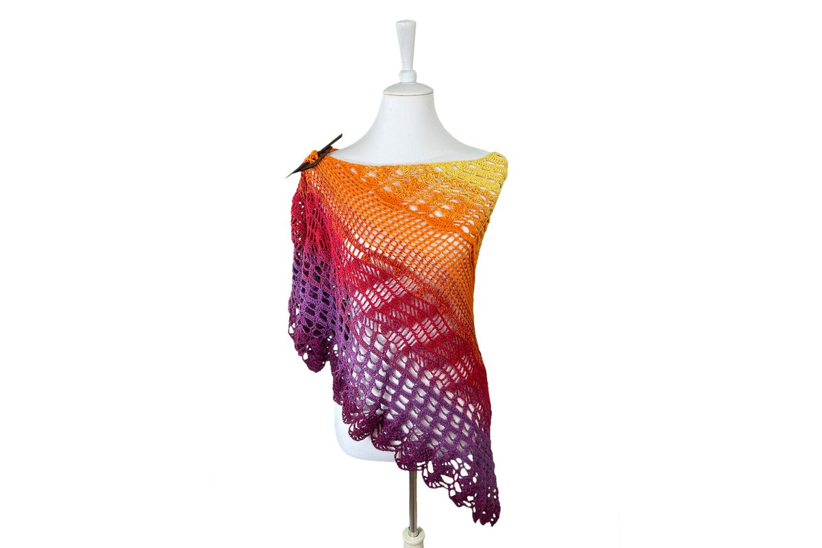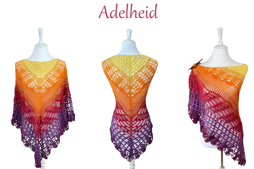 Adelheid, das klassische Dreieckstuch dass durch sein verspielt, romantischen Muster jeden in seinen Bann zieht. Es lässt sich vielseitig kombinieren. Dank des ausführlichen Textes und der übersichtlichen Häkelschrift ist es für Anfänger sehr gut geeignet.