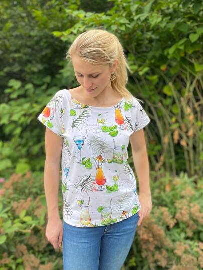 Das BlueSprungShirt ist ein legeres Sommershirt passend zum HighWaistLook. Ganz nach Stoffwahl kann es mal locker-lässig aber auch sportlich-schick sein. Ganz wie du es magst.