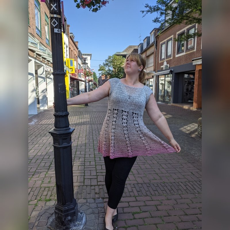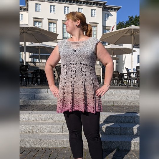 Für eine Tunika in A-Linie in Gr. 46 habe ich 1500m vierfädigen Bobbel verbraucht.