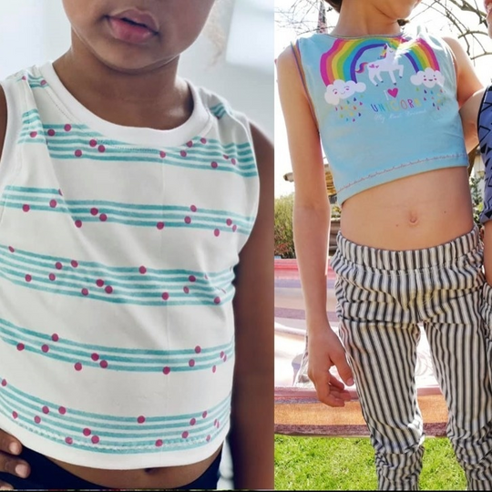 Croppi ist ein Kurztop ,welches ursprünglich zum drunter ziehen für das „Mini-Cropped-Shirt“ entworfen wurde. Natürlich kann Croppi auch solo getragen werden :-) Croppi wird in Doppelgrößen genäht und liegt somit, je nach Körpergröße und Brustumfang, nicht komplett eng an. Croppi endet so ungefähr auf Bauchnabelhöhe. Du kannst es aber auch problemlos verlängern ;-)