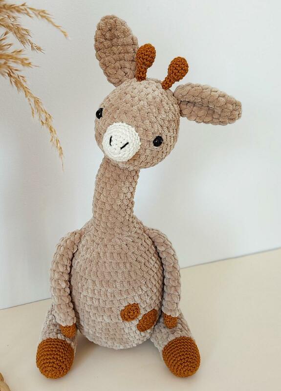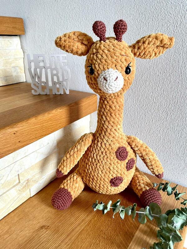 Wenn du die Plüschwolle von Himalaya Dolphin Baby benutzt, wird die Giraffe ca. 26 groß.